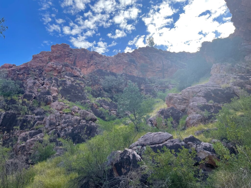 Instead, I went on possibly one of my most favorite walks in Alice Springs so far – Mount Ertwa. I walked along an old trail, then continued on to the top of the range. It wasn’t long before I spotted… a red kangaroo! While I had seen them the night prior, it was a treat to be able to see one looking right at me and allowing me to snap a picture of it before hopping off. I saw two along the hike. The hike itself involved walking through along lots of shrubbery and rocks – but it was lovely. Aside from the flies. At times, when out in nature around Alice Springs, the flies remind me of just how awful they were in Kalbarri National Park. They simply would NOT. LEAVE ME ALONE!!! Absolutely relentless. They drive me crazy.