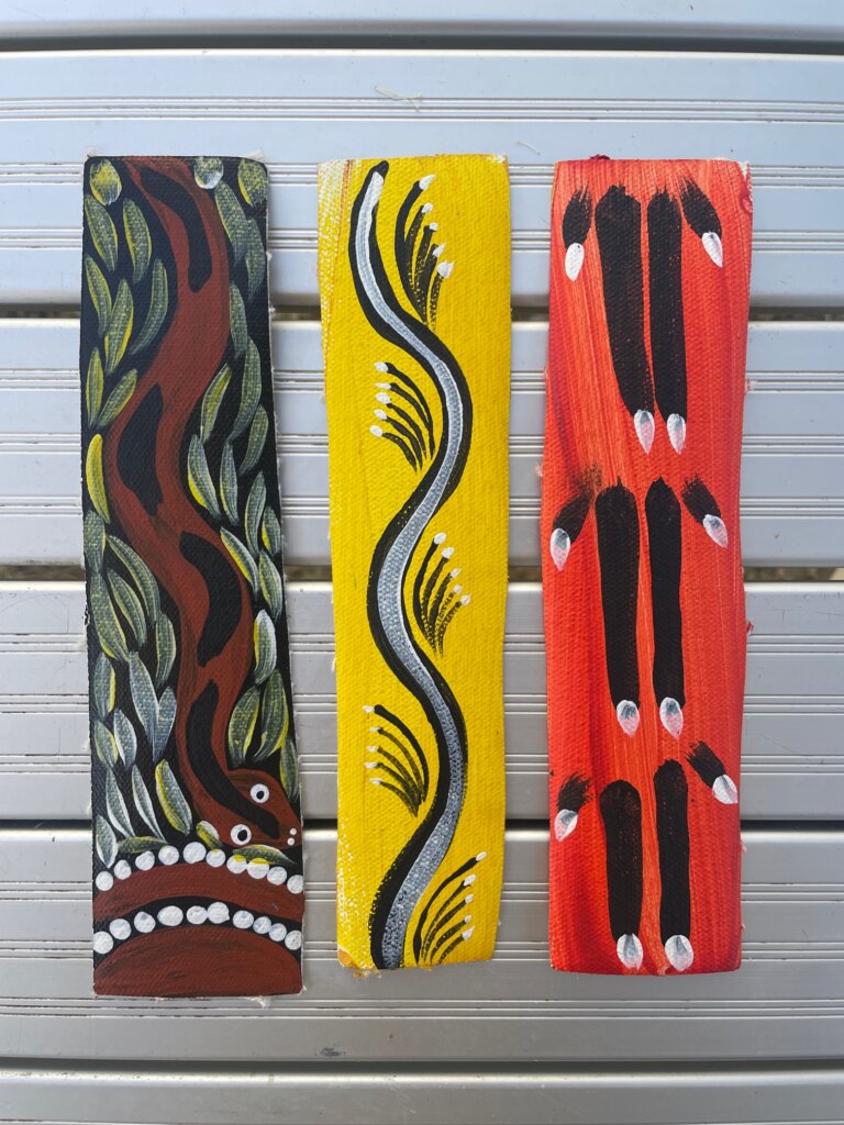 Michael ended up giving me a few “bookmark” paintings that he has had for a while – they are thin strips of canvas, painted by Aboriginal artists. It was very kind of him and it’s such a lovely (and easy-to-pack) souvenir to remember my time in Alice Springs.