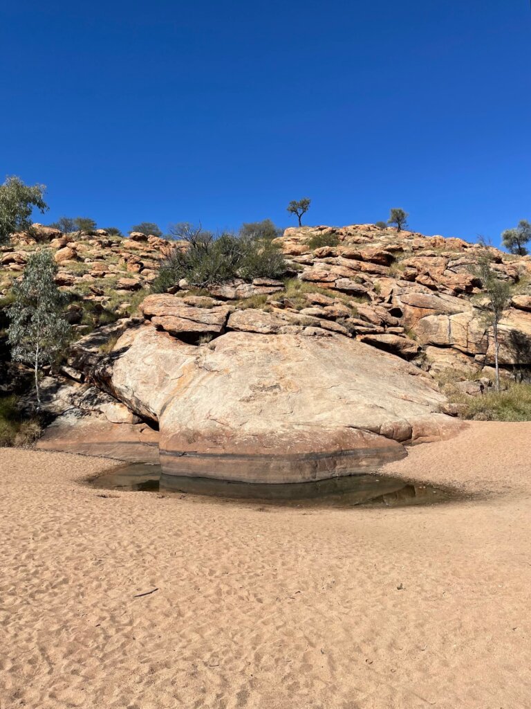 As far as wildlife… an eagle soared overhead. I had my eyes out for a rock wallaby. To my surprise, there were heaps of fish in the river! It seemed like such a small river, but it was actually the Finke River – remember that guy from last week’s post? The Finke River is regarded as one of the oldest rivers in the world.