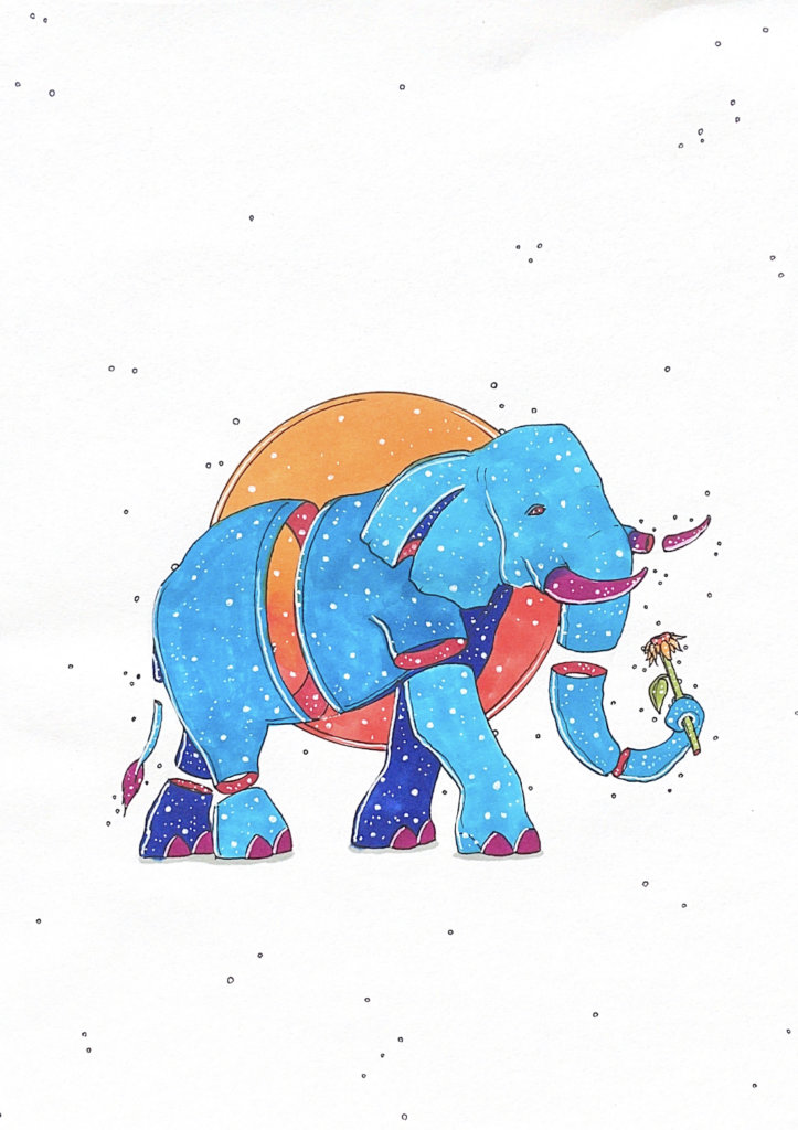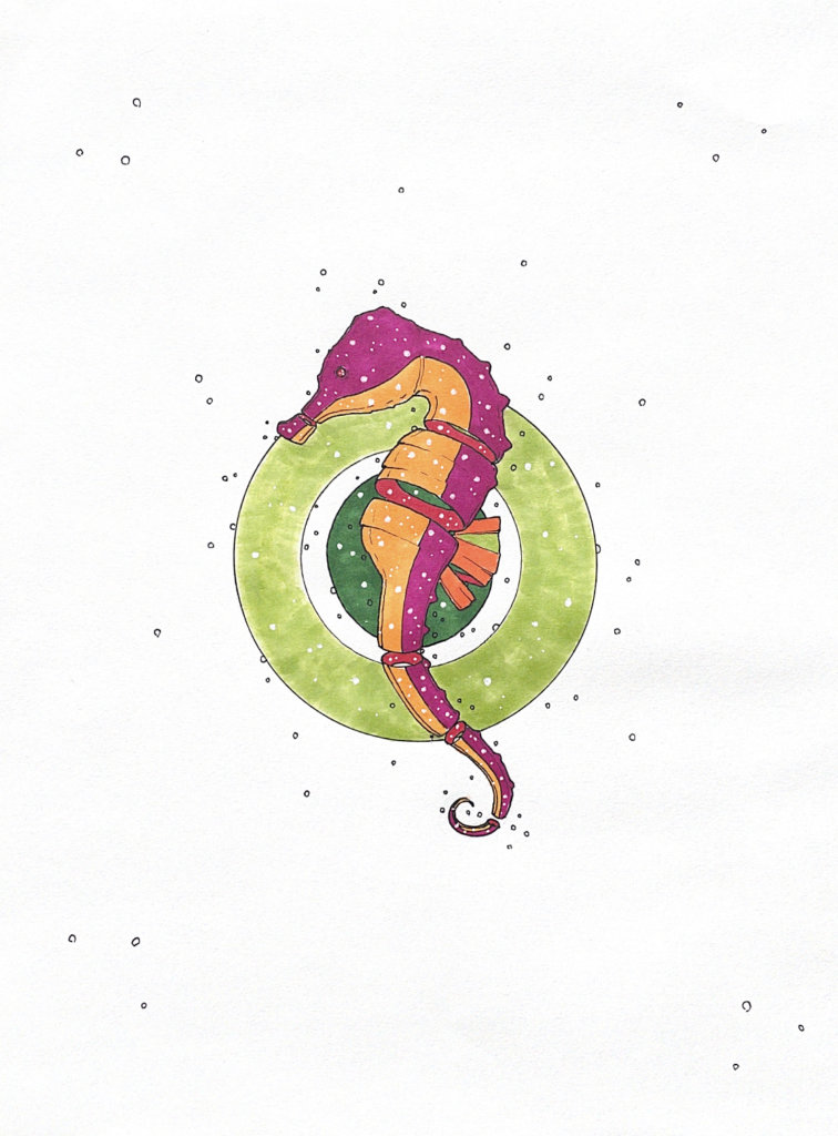 What have we got here? A whale, an elephant, a sea horse. I’d say it’s a good introduction to the animals. With “Whale Masquerade,” I ended up titling it that because… the eye placement is less like a whale and more like a shark. Hence, a whale masquerade. “The Friendly One” is my favorite from this week, and one of my favorite animal drawings. I made it into a t-shirt which you can see on my instagram. “Under the Sea” is… eh. I like it, but the marker is looking pretty streaky on the paper.