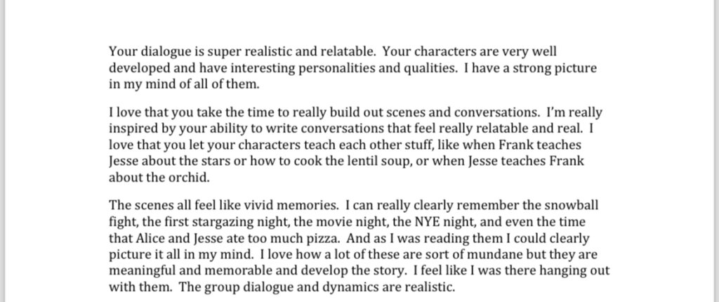 I wanted to share some feedback I’d gotten from when I’d shared my work prior to getting it published.