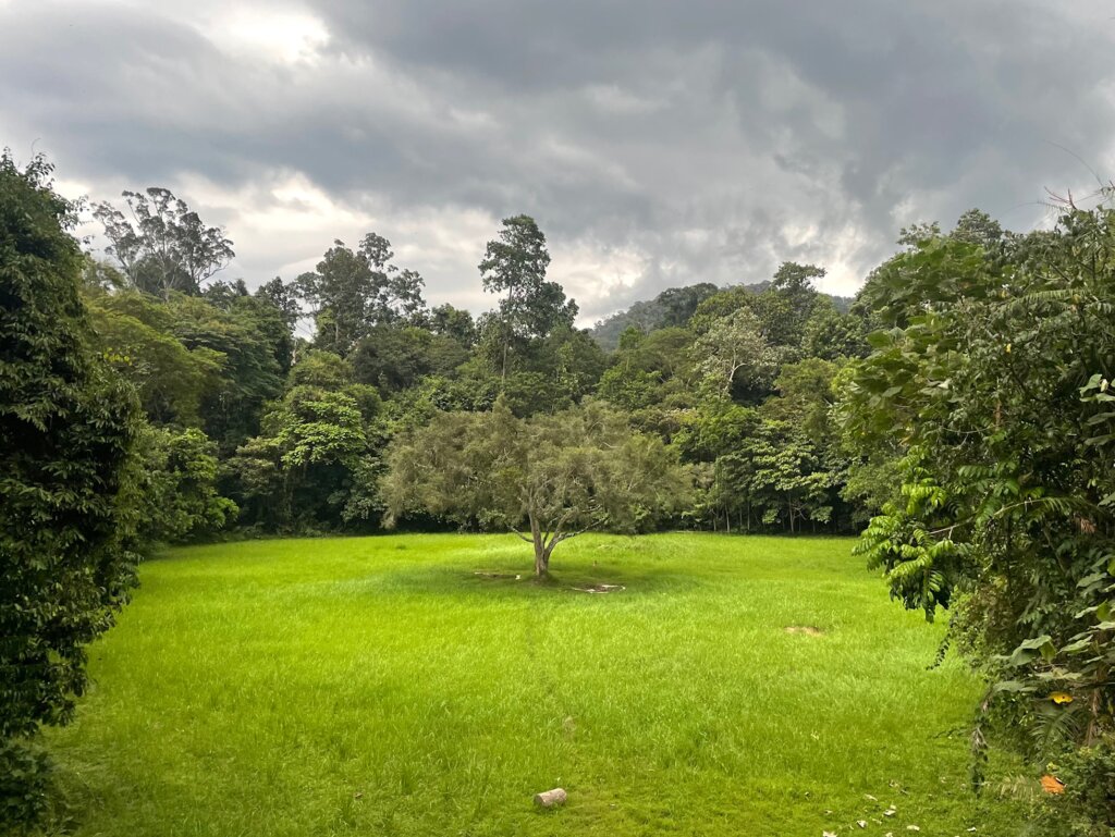 Tahan Hide is a shelter overlooking a meadow with a lone tree in the center of it. Hanging from the tree branch is a salt lick, for animals to come and get necessary nutrients (minerals like sodium and chloride according to the Interwebs).
