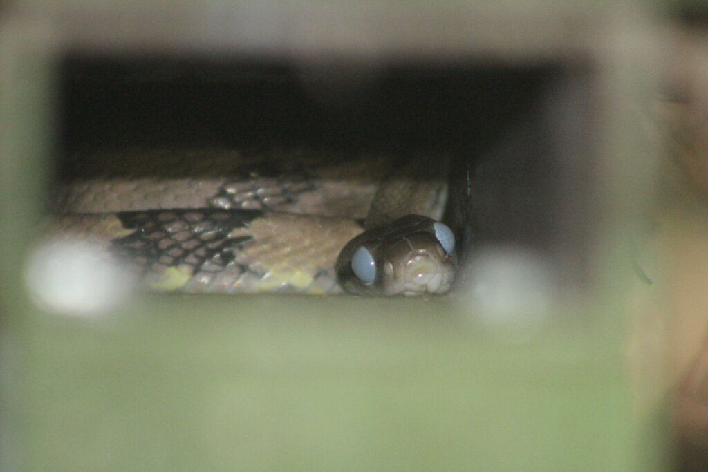 I was shocked to see the cloudiness of its eyes. They looked so insane! Is this what snake eyes look like when they’re “closed”? I learned the snakes don’t actually close their eyes and the reason for this cloudy appearance is that the snake is likely in the process of shedding. They are essentially blind until they shed their skin – which makes sense why they would want to find a proper burrow to hide until they finish their shedding process.