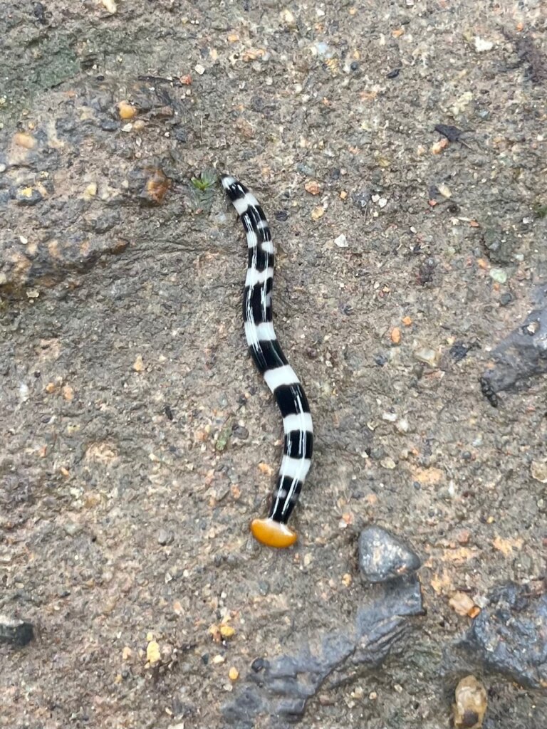 Halfway through the trail, I was happy to discover a teeny, tiny snake in the middle of the path. It was crunched up in such a way, I wasn’t even sure it was alive. I’d seen one other snake that was all wrinkly like this when in Indonesia.