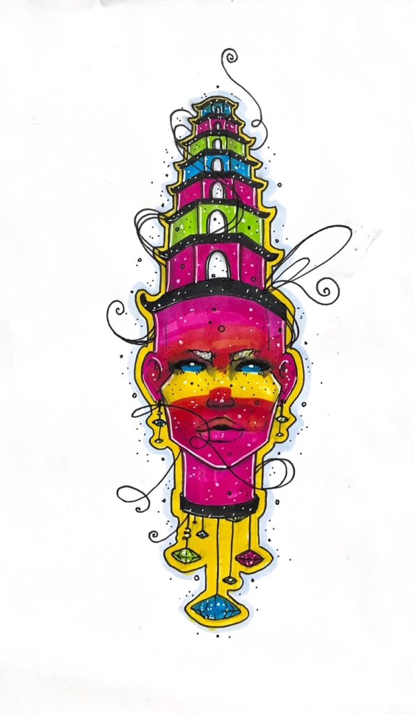 I haven’t drawn anything in quite some time. Some of it is that I only had two pages left in my sketchbook, but I also have just been kind of focused on all the traveling. It took a while for me to find a good spot to sit down and simply… draw. I found it in Cát Tiên. It had been a few weeks and already, I felt I had lost some of my confidence with the pencil. I have definitely been lacking art-wise lately, but I know once I’m back in the States, I’ll have a lot more time to focus on the craft once again. This piece is inspired largely by the pagodas I’d seen in Central Vietnam, particularly Thiên Mụ.