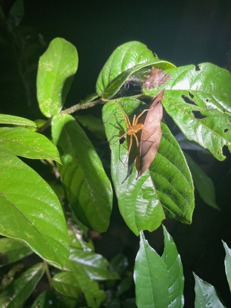 My fear was alleviated temporarily when we would spot some sort of wildlife. Early on, we spotted a few bent-toed geckos, some frogs, etc. Fun stuff. Also, the occasional huntsman, though I’m very used to them now.
