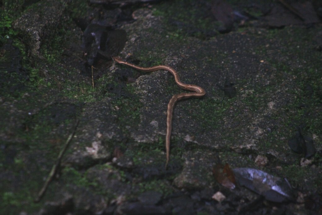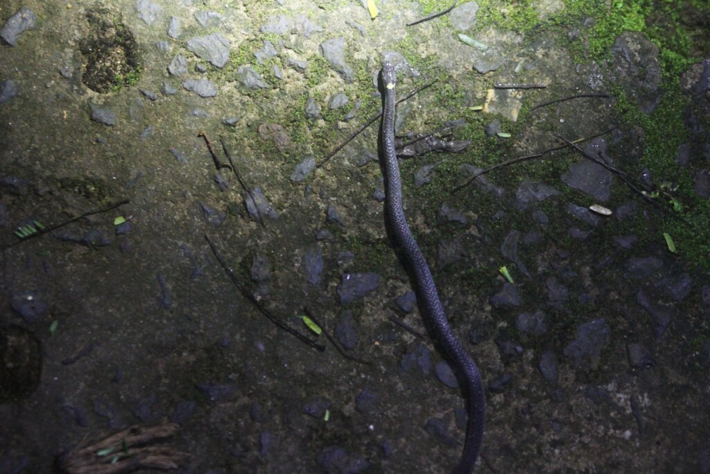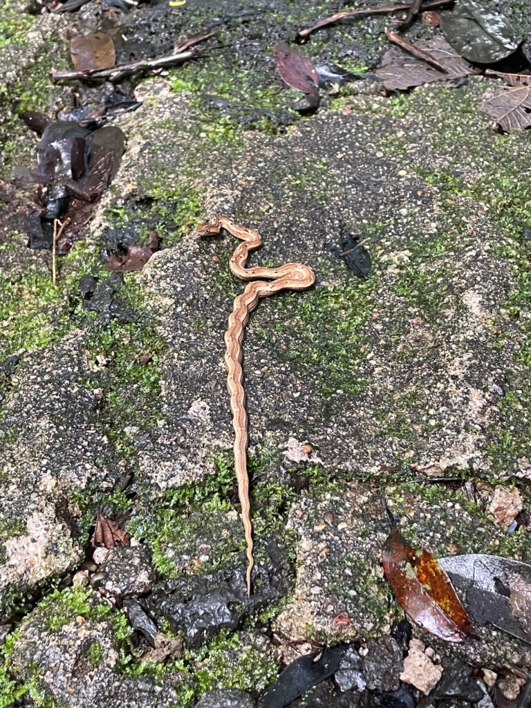 Maybe 45 minutes and 45 leeches later, we were back on the main road. Now this was the type of herping I like to do. I get the appeal of trekking through dense jungle, looking for wildlife. I mean, wildlife THRIVES in those thick conditions. But honestly, I prefer wide, open trails. I feel safer and I feel it’s easier to see snakes and other creatures when they’re crossing the road.