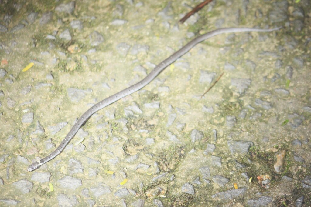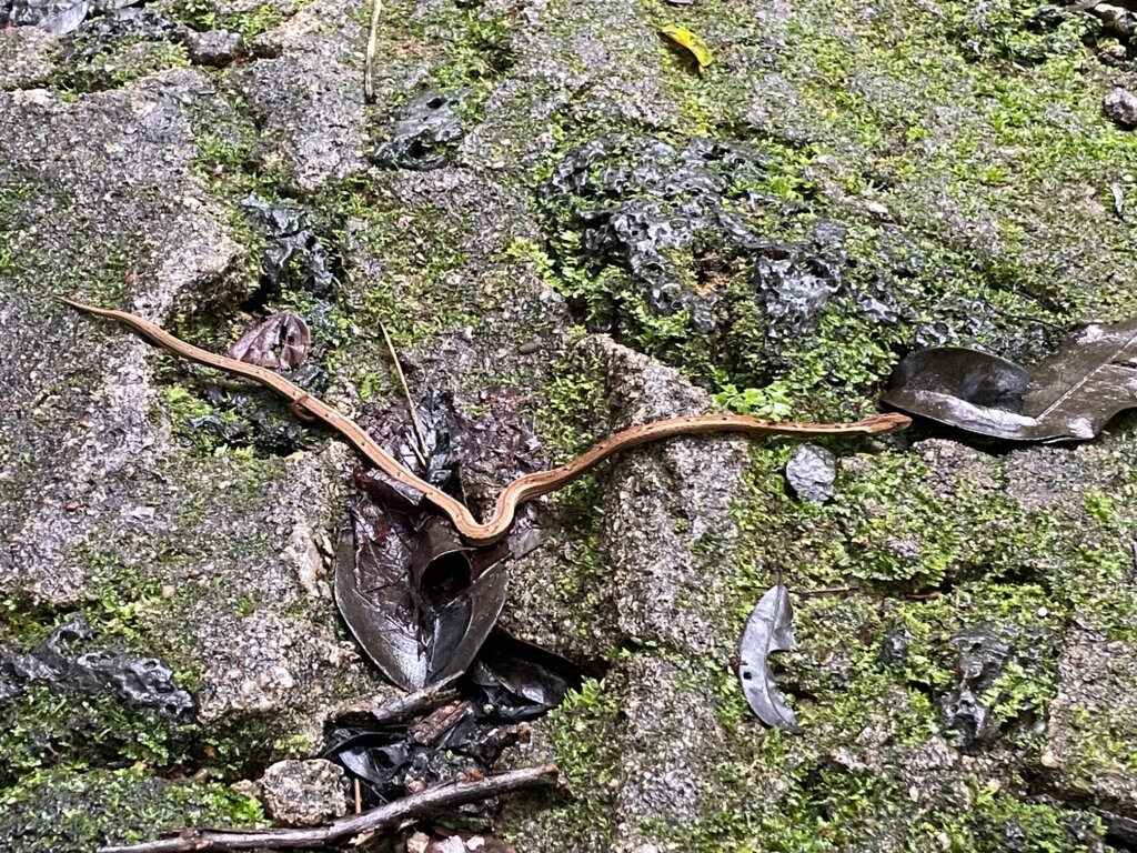 Almost immediately, I spotted a snake on the road in front of us. It was pretty small and moving a lot, so it was hard to get a decent photo. Khanh thought it was a juvenile red-necked keelback, but I posted it on Reddit later and someone confirmed it’s actually a white-spotted slug snake. Eats slugs.