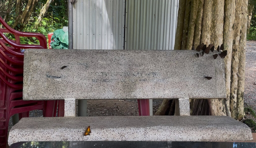 I hung out in the shade for about 45min before beginning the hike back. I spotted a tokay gecko and was able to snap a pic of it in the daylight for the first time. I had another rest once I’d gotten to the head of the trail. There was a bench full of butterflies! I deemed it the Butterfly Bench.