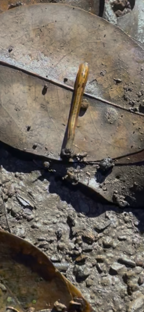 On my first day, I went to the east of HQ. I walked slowly and kept my eyes peeled for any kind of wildlife sighting. First creature spotted was a striped flatworm. Beetlejuice, Beetlejuice, BEETLEJUICE! I also saw one of these Pinnochio/dildo-looking dudes. I’d seen its cousin back in Sumatra.
