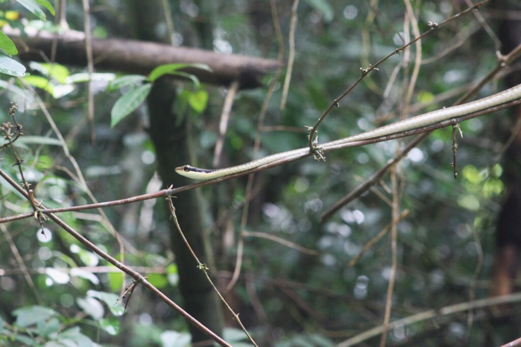 Just before making my way to the rapids, I spotted something in the bush to my right. Was it a snake? Yes, it sure was! It was another red-necked keelback. It sat motionless for some time and then slithered away. I tried to follow it but it disappeared behind a bamboo thicket and I wasn’t able to find it again. So far, I’d seen a snake (or more) every day since being in the park!