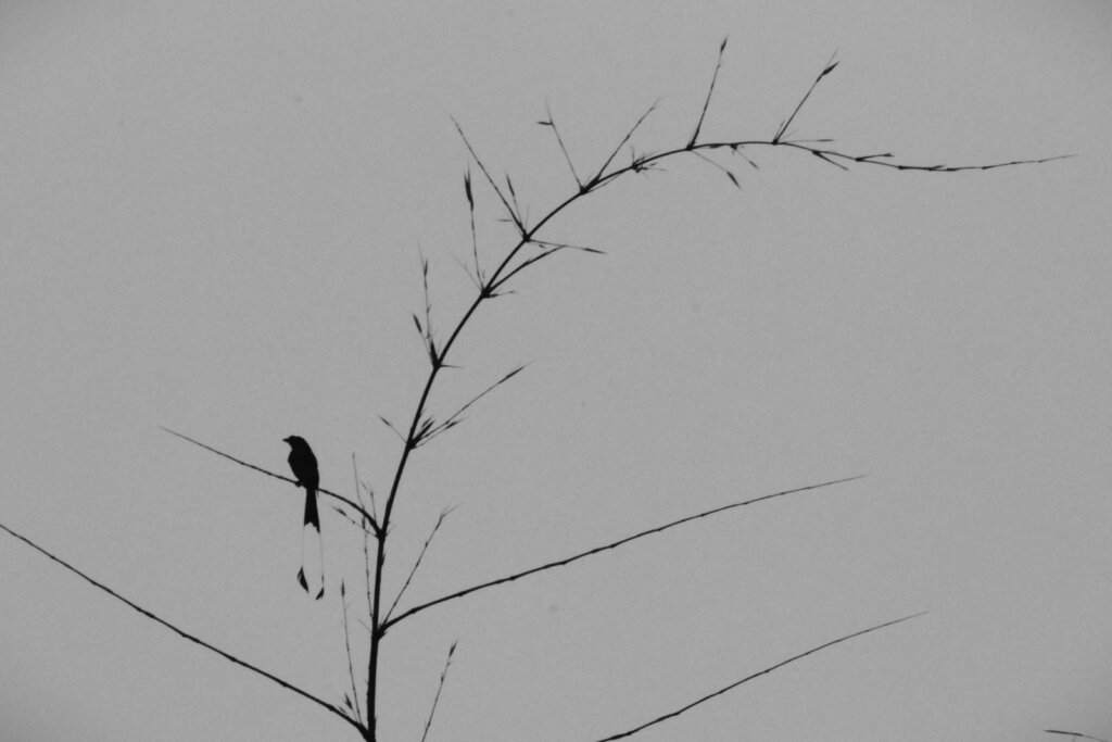 Silhouette of a racket-tailed drongo