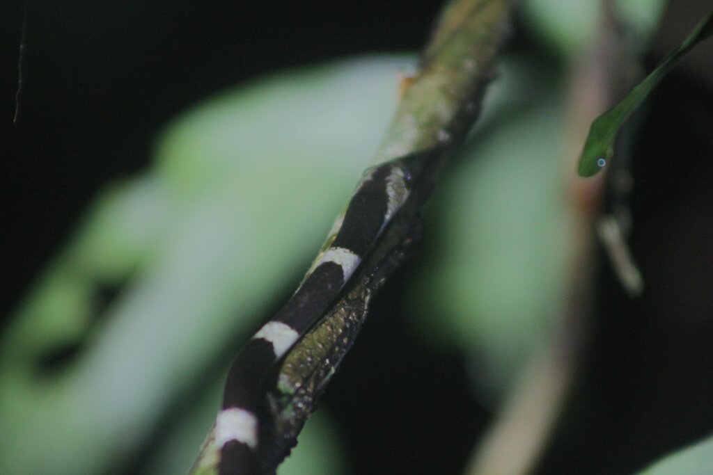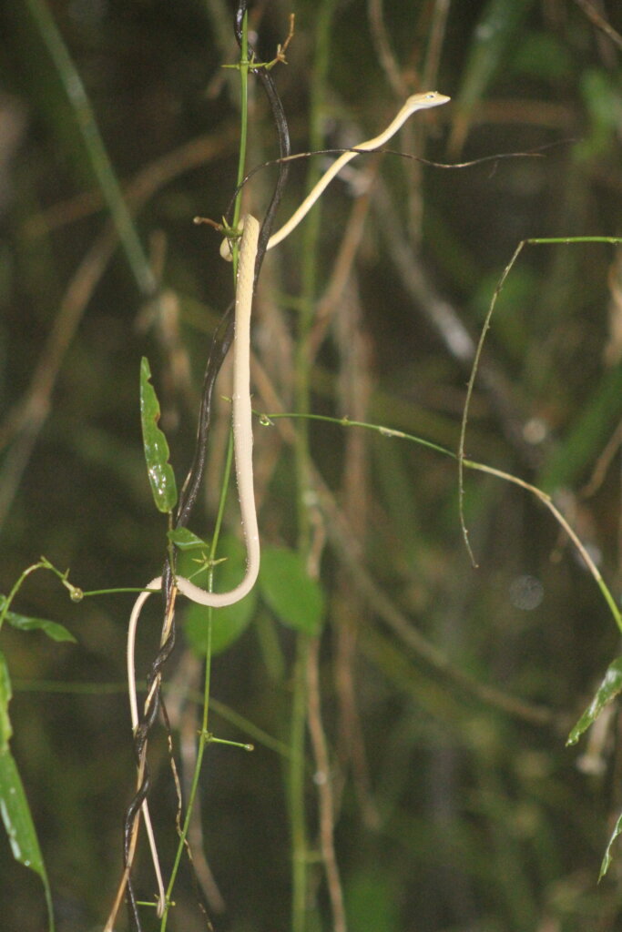 And maybe five minutes from HQ, he spotted a green cat snake. “What big EYES you have!” I’d love to see this guy again under better positioning. He was kind of faced away from us the whole time. I love the color though. The big eyes, the varied color, the way it was curled into the foliage. It was a solid final sighting of the night.