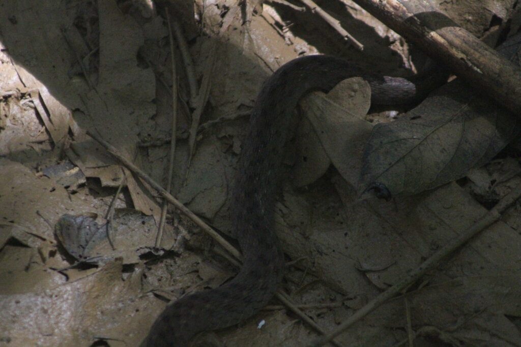 As I turned back, I stood at the edge of the trail and looked down at a small stream below. Definitely snake territory – good place for them to look for frogs and maybe small fish. And sure enough, there he is! It was a very quick sighting and the photos turned out terribly so I’m not going to share them. It was a Bocourt’s Mud Snake. I was slightly frustrated that I wasn’t able to get a decent photo. I am seriously such a brat sometimes.