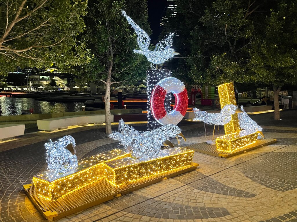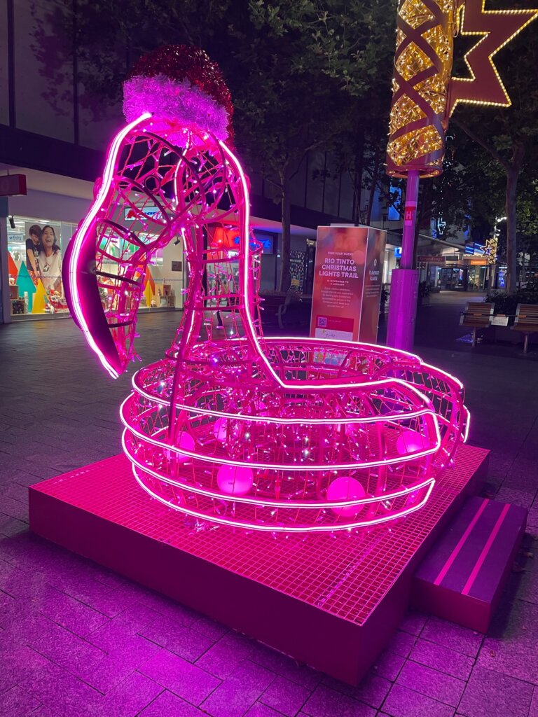 Perth, known as the City of Lights, had set up a “trail” of Christmas lights throughout the city to check out. Kory wanted to go one evening, so after work we set off to explore the lights. I had seen some while walking around the city, but it was cool to make an evening of it.