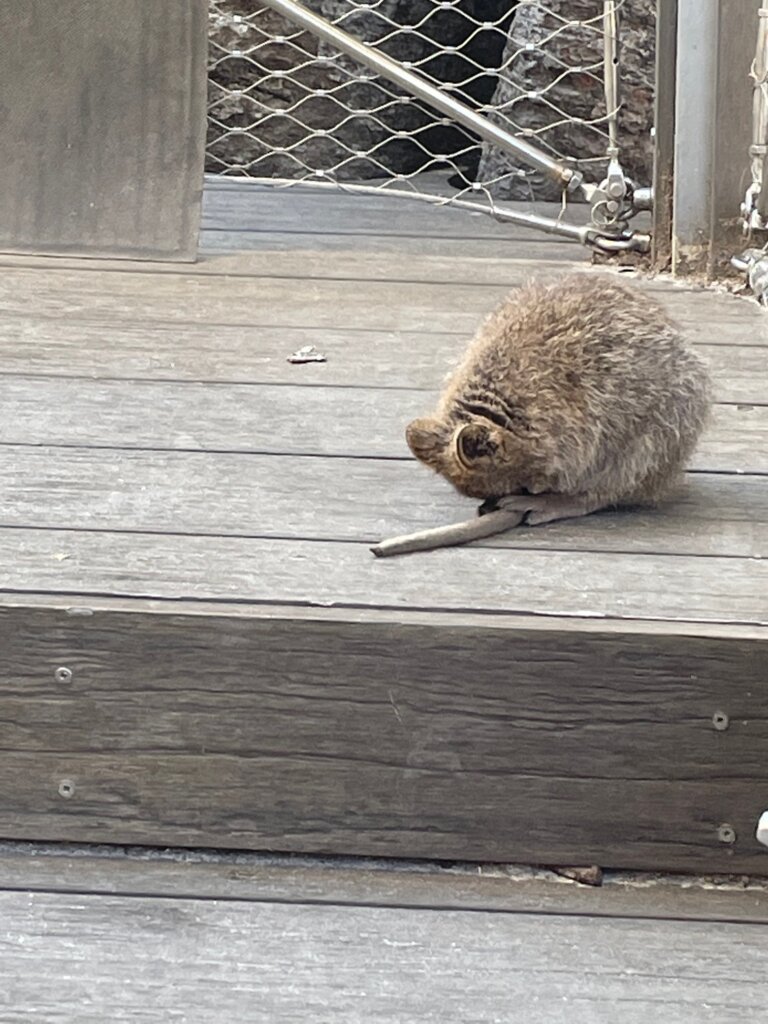 A 10 year old kid came to look at the quokkas, too, followed by his mother. I talked with his mom a little bit. She is from the UK but has been living in Western Australia. We talked about Western Australia’s lockdown, quokkas, and Chicago. She had gone to Bradley University in Peoria – which isn’t very far from Chicago. What a small world this is at times.