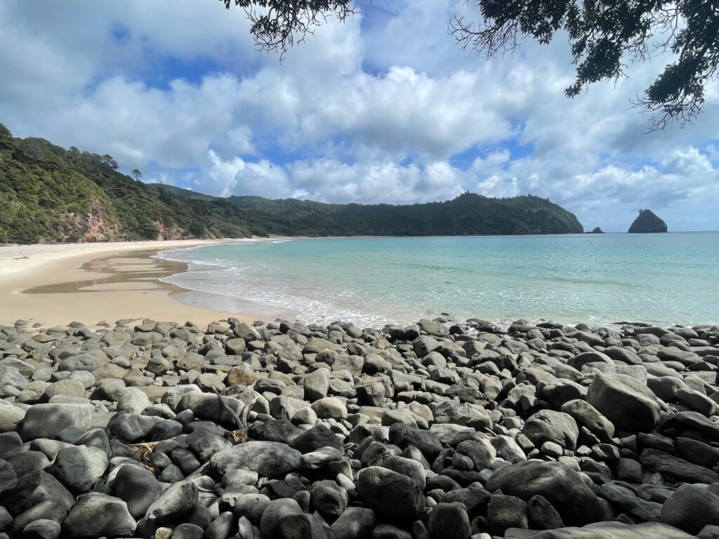 I made a slight detour to New Chums Beach which is supposedly this really beautiful, secluded and unspoiled beach. I found the parking lot then had to walk a bit of a track to get there. I had to cross through a shallow stream, balance over a bunch of boulders near the water, then walk up a very muddy/slippery track for maybe ten or fifteen minutes. By the time I’d arrived at New Chums Beach, I had a cut on my hand and mud all over my Birkenstocks and feet. Haha. Crazy. I’m sure I would have enjoyed the beach more had it been a warmer day without wind. Instead, I sat for a few minutes to enjoy the scenery, then began the trek back to my car lol.