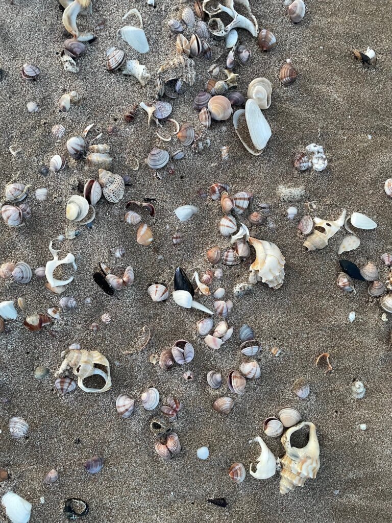 A quick trail through the bush led to the beach. In the evening, I walked along it, looking at the massive collection of seashells that had been stranded on the beach at high tide.
