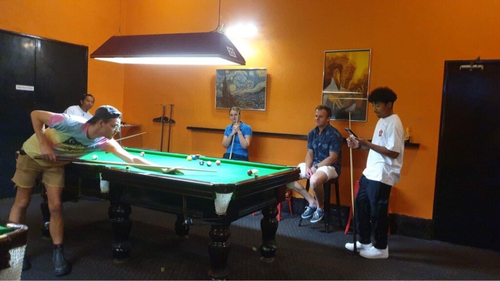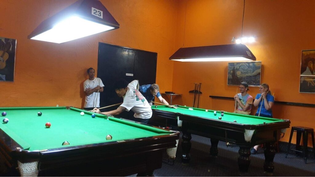 We played a few arcade games but then had to move on because the bowling alley was shutting down. From there, we went to Northbridge to play pool.