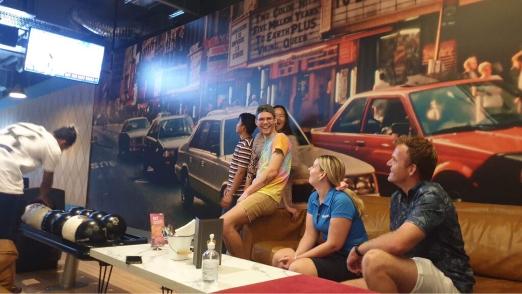Putu had suggested bowling at one point so we left the bar and walked down to the city to go bowling. It was so much fun being with everyone and cheering them on, even as some of us got gutter balls over and over and over again. My final score was 69, which is a pretty solid score.