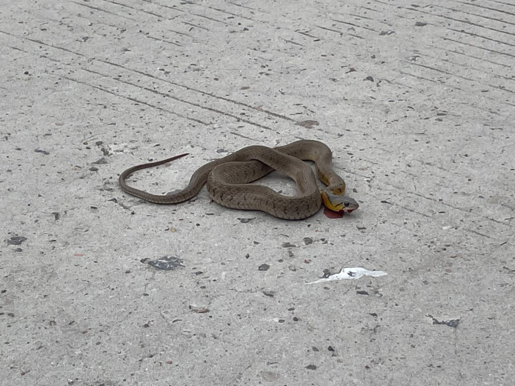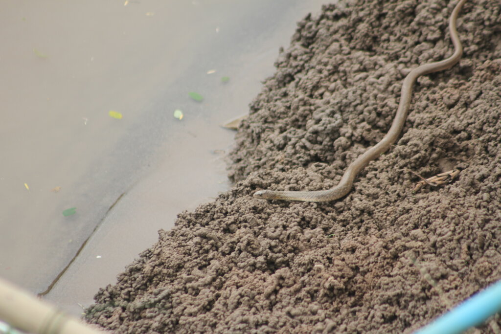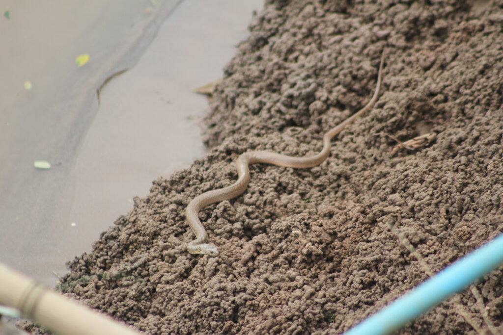As I rode my bike into town, I spotted… another snake! In the middle of the road! It was curling its body in a sort of defensive display. And someone else pointed out it had blood in its mouth. It must have been hurt. I wanted to help it off the road but couldn’t find a stick. A local came by and knocked a stick next to it, driving the snake towards the river. I hope it will be okay – I’m afraid it maybe had gotten run over slightly and was suffering internal injuries. Poor l’il guy. This one was also a yellow-spotted keelback. I even saw a third and final snake during sunset, but couldn’t grab a photo in time. Another water snake.
