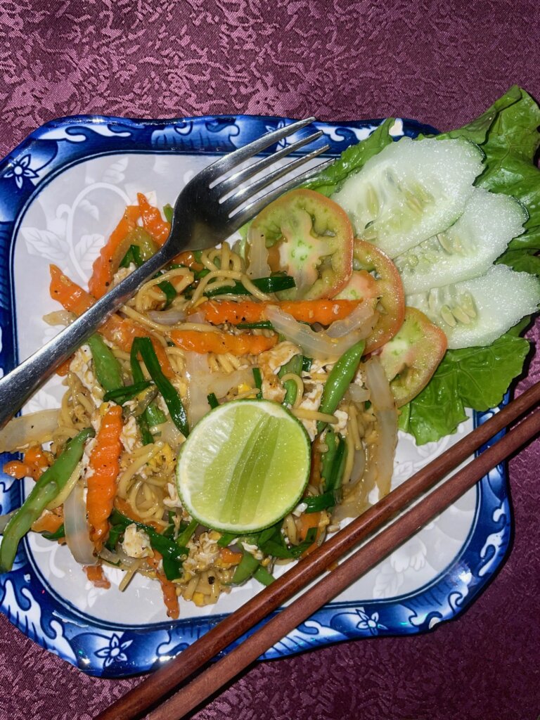 Luckily, I’d been able to get a SIM card at the border crossing. Once at Don Det, I exchanged my remaining USD for Laotian kip. I talked with the employee at the money exchange kiosk for a few minutes. He helped me how to pronounce “thank you” in Laotian and then invited me to have dinner at his restaurant next door. Because it was already dinnertime, I set down my luggage and ordered my first Laotian meal. Yum!