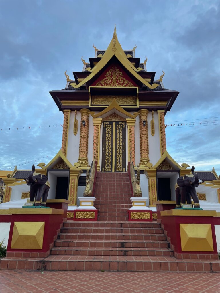 Heading back into town, I made my way to the golden Buddha statue across the Mekong. For 10,000 Laotian kip, I was able to buy a stem of flowers which I brought to the Buddha for Maia.