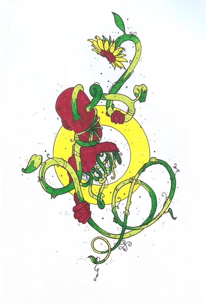 For the rest of the day, I hung out around my beautiful campground. It was part campground, part… animal farm. There were goats, cows, horses, sheep, birds. I did yoga, worked on the drawing I’ll post below, and repacked my bags ahead of Fiji. As I was repacking my bags on the ground, an inquisitive rooster came to check out what I was doing. And later, a duck. The duck came so close to me, I couldn’t believe it!