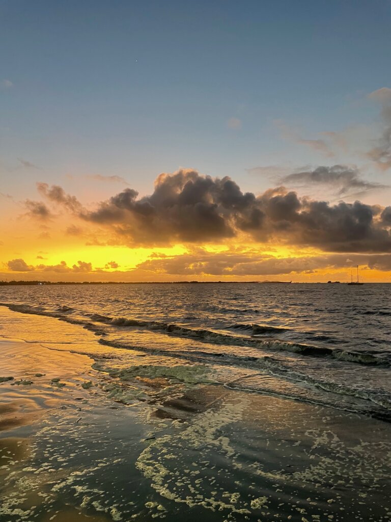 I’ve spent a lot of time hanging on a beach chair near the water, reading my book, swimming in the warm ocean, and soaking up the sun. The sunsets have been incredible.
