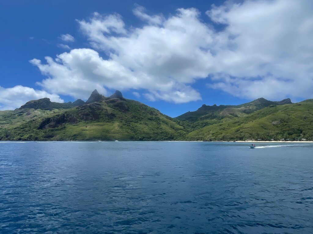So many interesting islands along the way to Mantaray Island. Oh, how I wish I could have stayed on these instead of in Wailoaloa. Wailoaloa Beach is fine except for that it’s sort of grey, the water is sort of grey, and there is litter and wild dogs running around. In contrast, the Yasawa Islands have beautiful white sand, gorgeous resorts and beachside amenities, and views to die for. The water was so blue while sailing through the open ocean and so clear once you were near to land. If only it wasn’t so expensive!