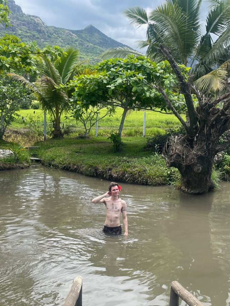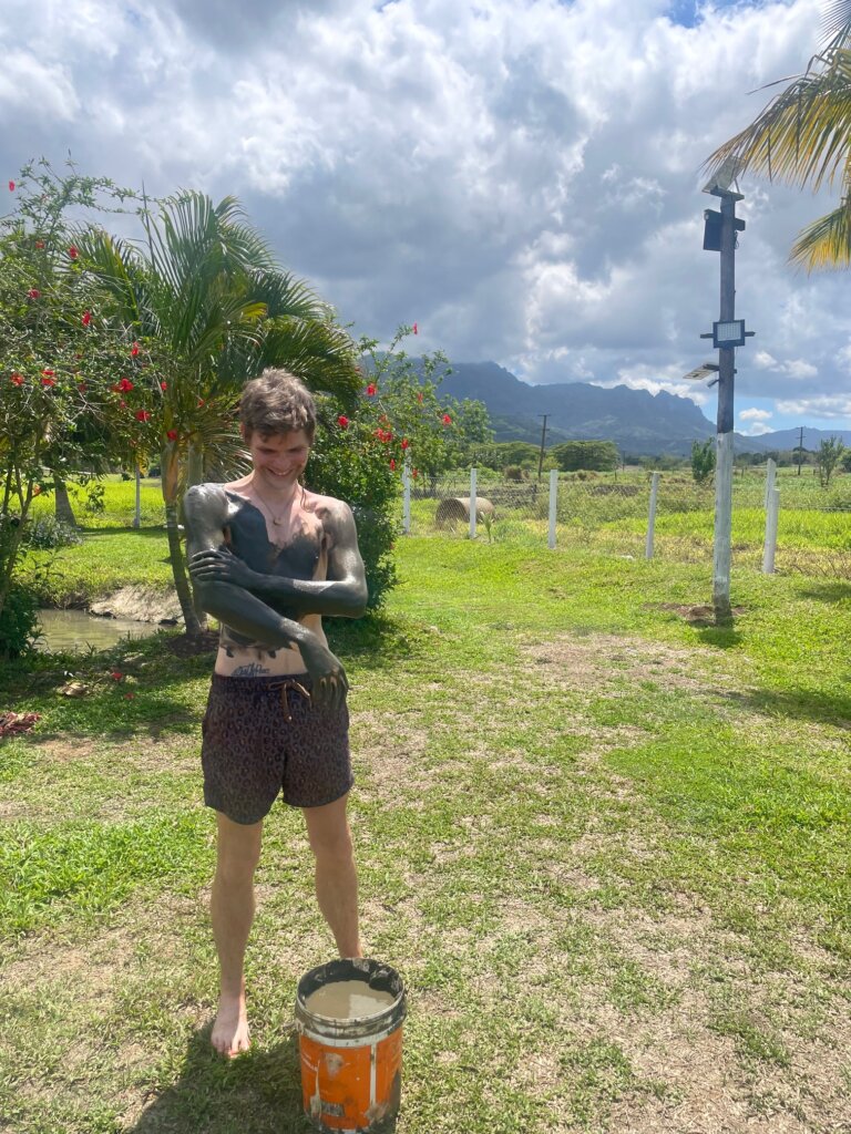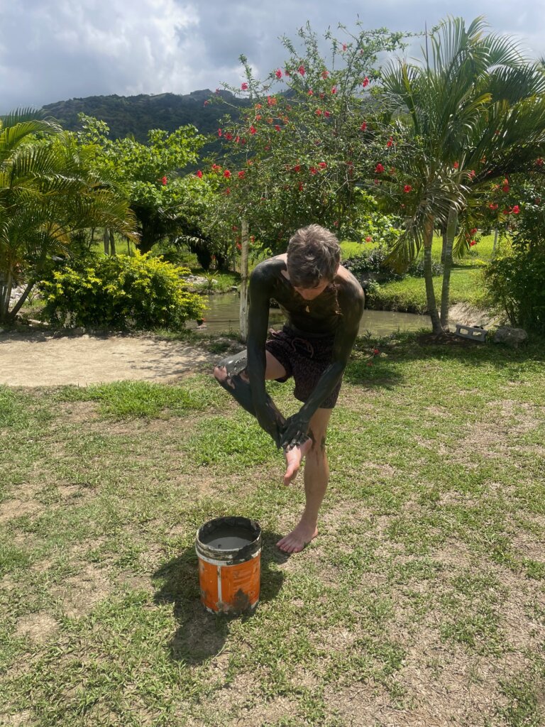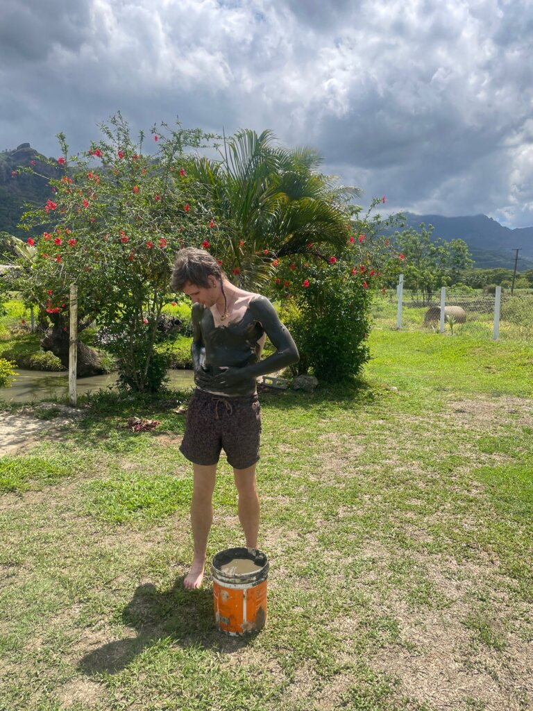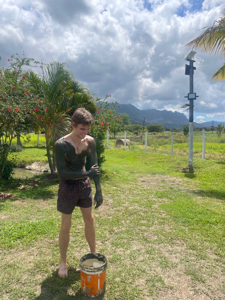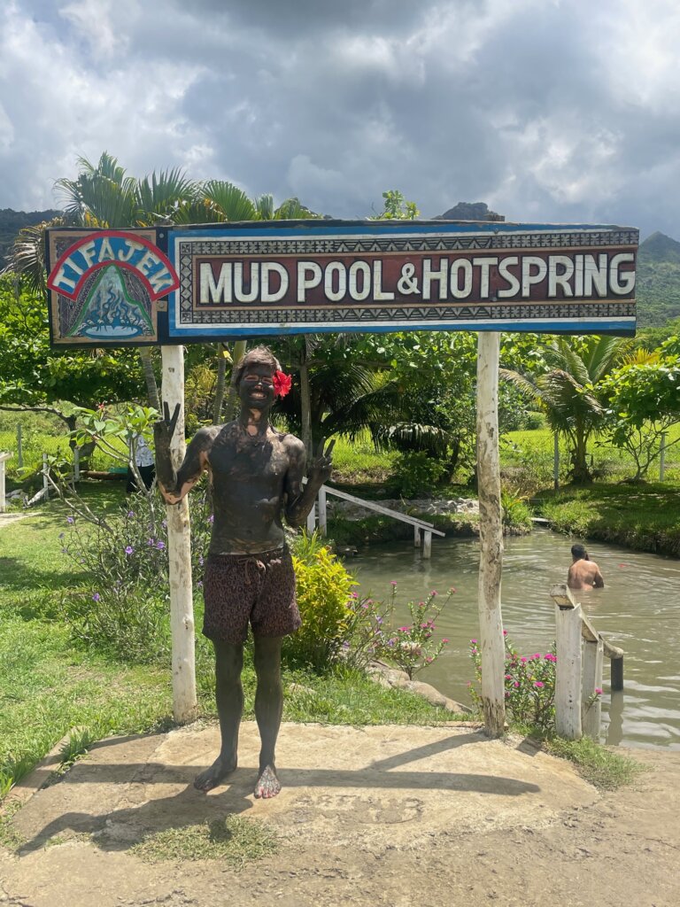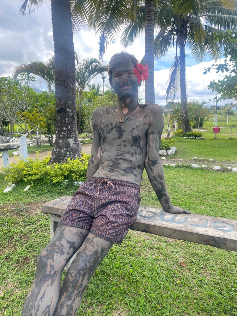 I changed into my bathing suit and then was guided to the mud pools, where I was asked to slather mud all over my body. The guide had my phone and said he would take a bunch of pictures of me. I thought it was kind of goofy and didn’t really want pictures but then I thought, why not, my parents will love ’em hahaha. So, I’ve included some of these ridiculous photos below. I was also given a hibiscus flower to wear in my hair. Cute!