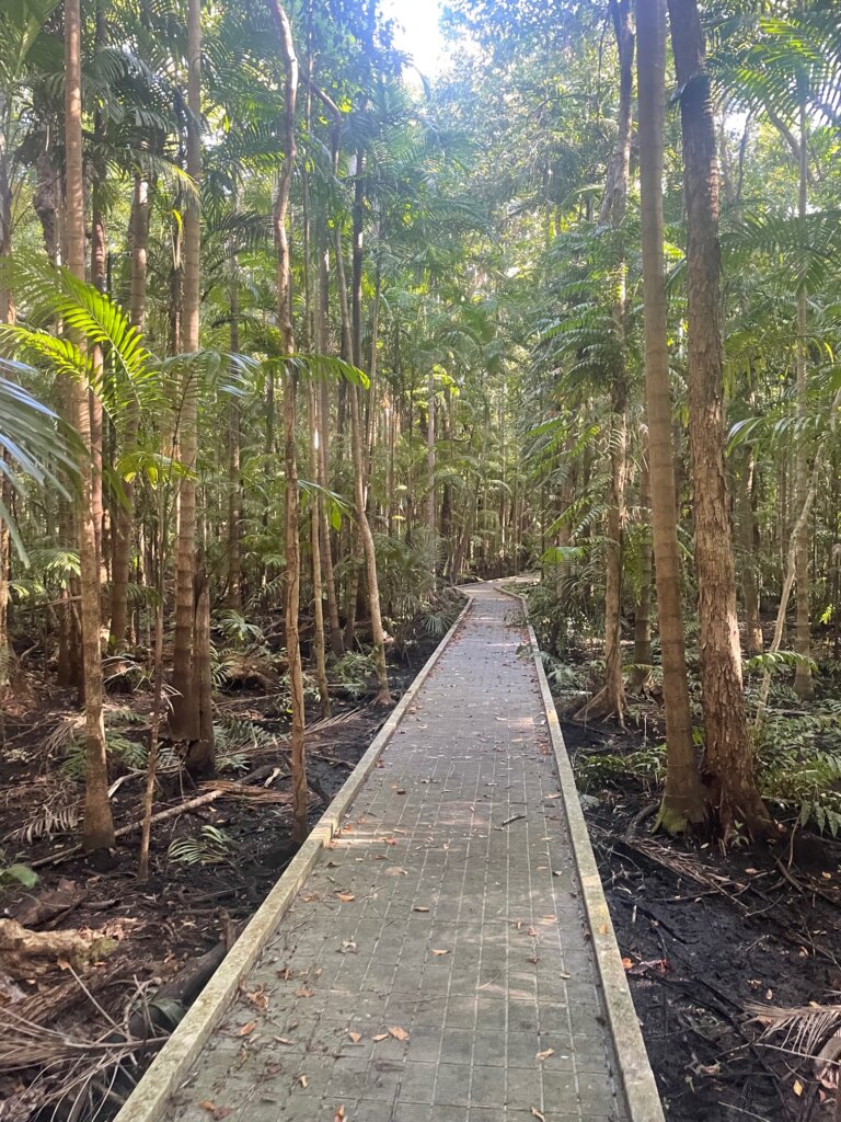 From there, we drove to a hiking trail that John hadn’t done before but wanted to do. We were mostly in the shade, with tall trees on either side of us for majority of the hike. At times, we would cross small bridges built over creeks. There were also sections of mangroves.