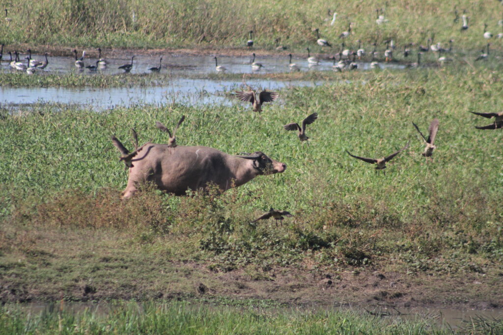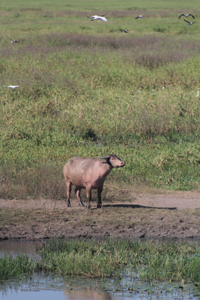 Just as we were getting up to leave the viewing platform, I spotted… a water buffalo! It came bulldozing across the field, sending dozens of birds flying into the sky. It stopped running and would look up at the birds. It started to wag its tail. And then it would start charging again, sending even more birds into the sky. It truly seemed like sending the birds into flight was bringing the buffalo joy. It was the cutest thing to witness and had we left a moment sooner, we would have missed it. Ah, wildlife.