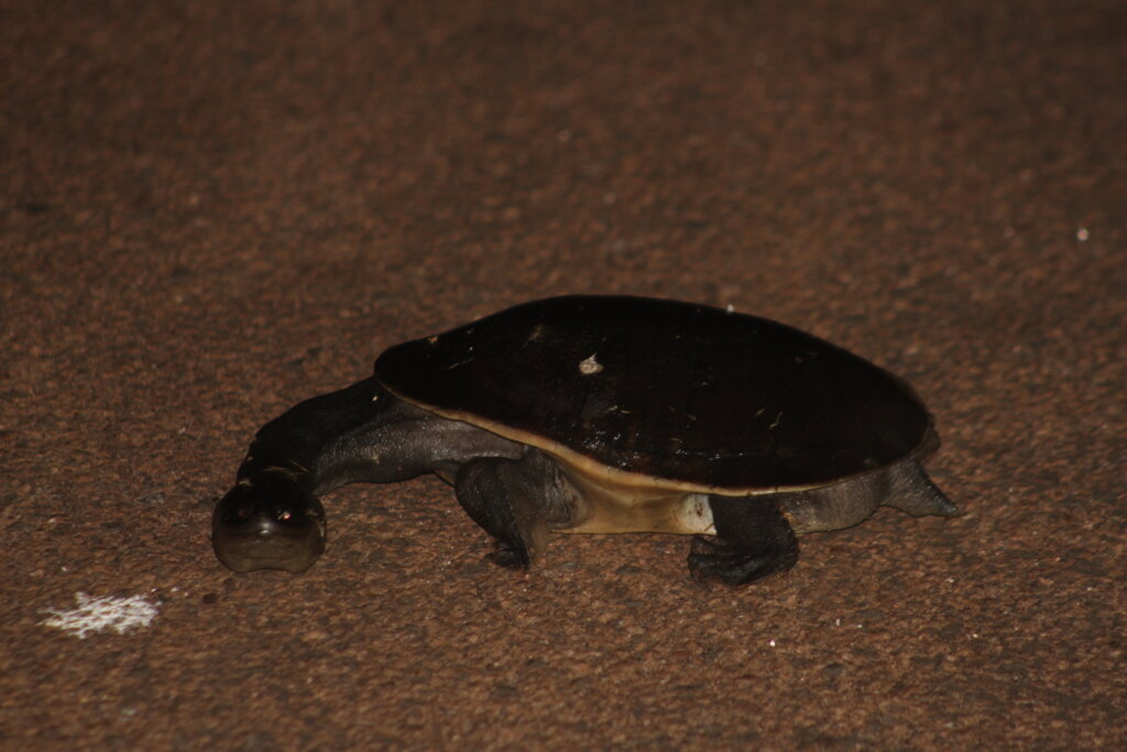 John had wanted to spot a snake all night. I did, too, but I also was a little scared-y cat with my weak torch that only shined a few meters in front of me (and poorly at that). Because my torch was so weak, I would occasionally say to John, “what’s that?” and have him shine his much brighter torch to identify what it was I was looking at. At one point, I asked him to shine his light and realized it was just the glint of an old beer can, but then John goes, “Snake!” And sure enough! A water python. What a treat! It was cruising by at a gentle speed, not caring much about us. What a beauty. John was so thrilled. I was, too, but John was very thrilled. I think after he had missed the bulk of the snake from the other day, he was happy he was able to spot this one in all its glory.