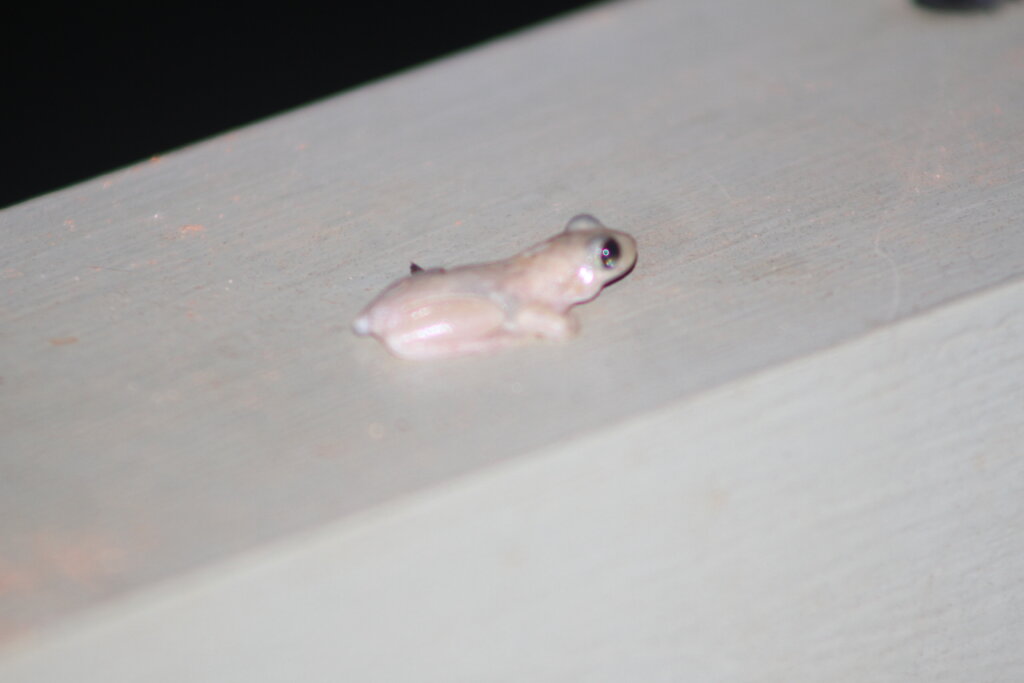 Another common visitor that evening was frogs. They were everywhere! We would watch them hop along the road. Mostly we saw what I think are common tree frogs, but we also saw these really teeny-tiny frogs hanging out on one of the viewing platform banisters. Adorable!