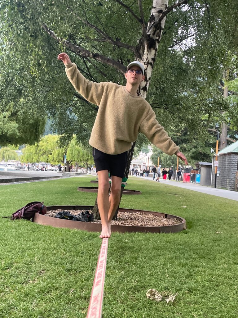 Funnily enough, two days after Enon gave me the slackline, I was able to walk across the entire length of the slackline. Sometimes I still fall off but I think I am finally understanding the balance. The next skill I want to learn is walking backwards on the line – I can do a few steps at the moment. People learn all sorts of tricks. They jump in the air then land on the line, turn forwards to backwards, etc. It’s fun and interesting to learn new skills.