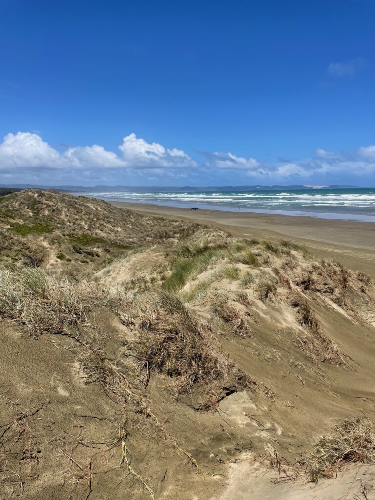 From the dunes, I drove further south. I filled up on gas, caught up with my family, and then drove over to 90 Mile Beach. I originally was going to skip it but then I thought, ‘just go check it out. It’s not a far detour.’ So, 90 Mile Beach is actually… a HIGHWAY. Cars drive down it haha. Of course, you really need a 4×4. My poor Goldie was not up for the challenge so all I did was have a quick glimpse and then carry on.