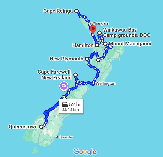 I’ve included a rough GoogleMaps itinerary of the journey we took since leaving Queenstown. Because there’s a limit to how many destinations you can use on GoogleMaps (dumb), there are a few things left out… but the below image should give you a general idea of the distance we traveled together.