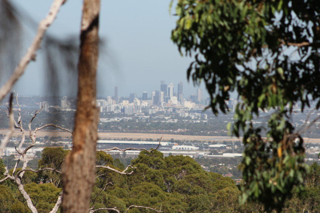 The trail offered some lovely views of downtown Perth. There were lots of trees, some boulders, and off in the distance there were cackling kookaburras.