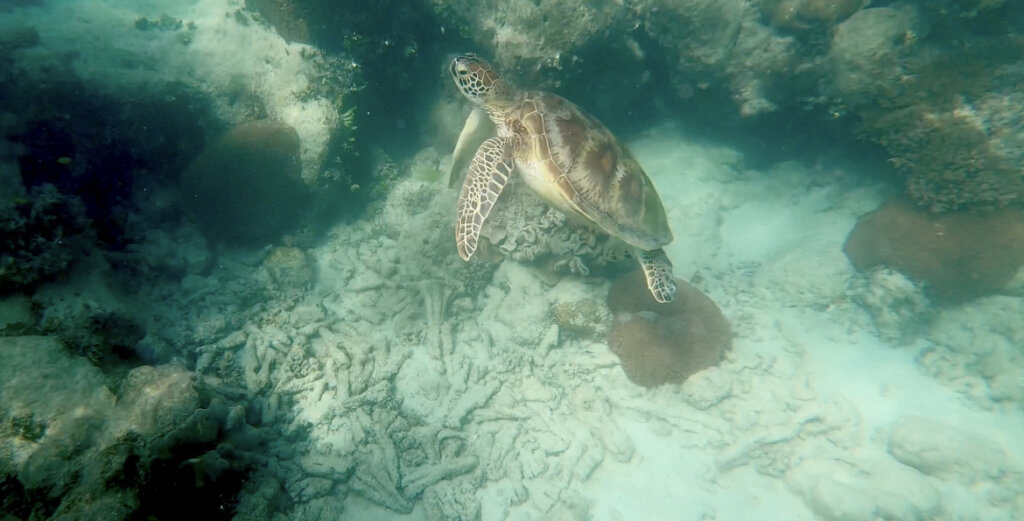 At one point, Indy tapped my shoulder and wanted me to look at something. A green sea turtle (honu), resting at the bottom of the ocean floor. It was by far the largest sea turtle I’d ever seen!