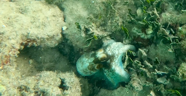 I saw a juvenile octopus and it was the cutest thing! As I approached, it tucked itself deeper into a crevice, changing colors along the way.