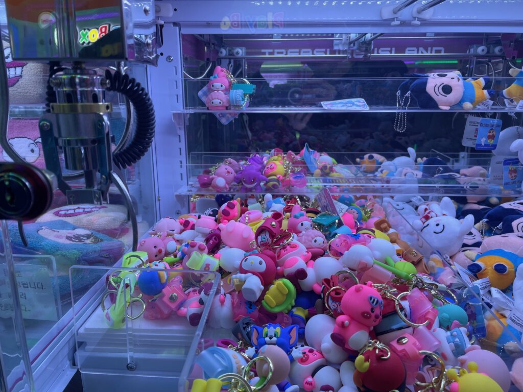 We walked down the main strip, with was host to lots of food stalls. Bread, bubble tea, fried chicken, meat skewers, etc. And then the occasional restaurants. Dotted among the food were mini-arcades. The little claw machines where you can win a stuffed animal or keychain, etc. Andrew bragged that he was very good at them. He actually was! He ended up winning me a little Jigglypuff keychain which I’ve since attached to my bag haha.