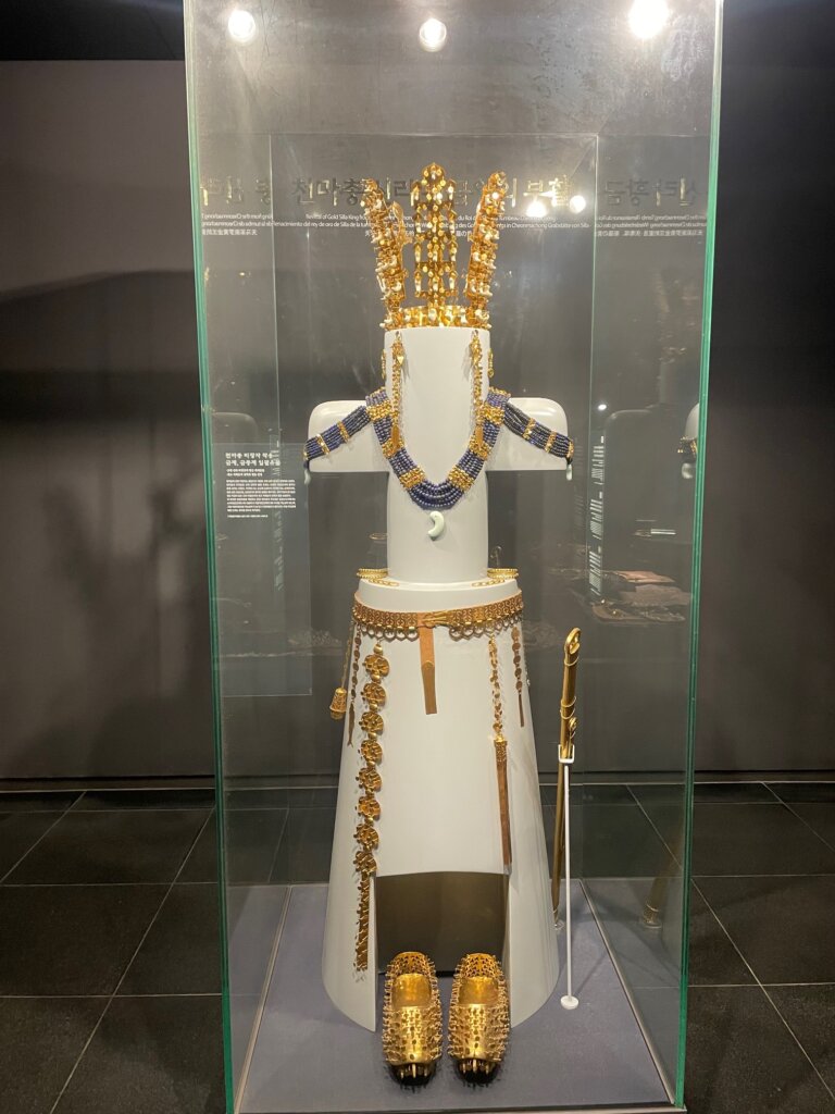In the early afternoon, we parted ways. Andrew had to get to his Buddhist temple stay (where he… stays at a Buddhist temple and does Buddhist-y things, I guess?). With a whole afternoon to enjoy still, I walked around to see the burial mounds again. There is one particular park that has a lot of them. There is one that I was able to pay a very small fee to go into (Cheonmachong). After excavating the tomb back in the ’70s, they preserved the artifacts and had a lot of information written about them.