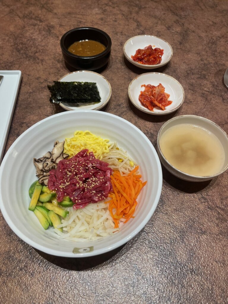 In the evening, I went to a restaurant to get some bibimbap (my favorite Korean dish). This one was a beef tartare bibimbap, which I’d never had before. It was really delicious, as were the sides. I’d since learned how to say “it’s delicious!” in Korean, so I said that to the server as I was leaving. I think as a thanks for my thanks, he gave me a traditional Korean knot for my keychain, which is now ALSO on my bag. I was the only person in the restaurant. I love when that happens.