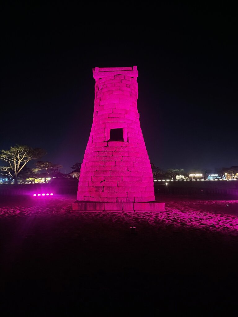 After dinner, I walked along another UNESCO site that is home to Asia’s oldest astronomical observatory. At night, it was lit up with changing lights. I liked pink the most. I walked around the area, which I think would be really lovely in about a month, when the cherry blossoms are in bloom. For now, everything is mostly still dead.
