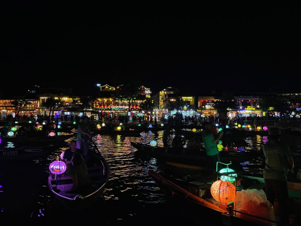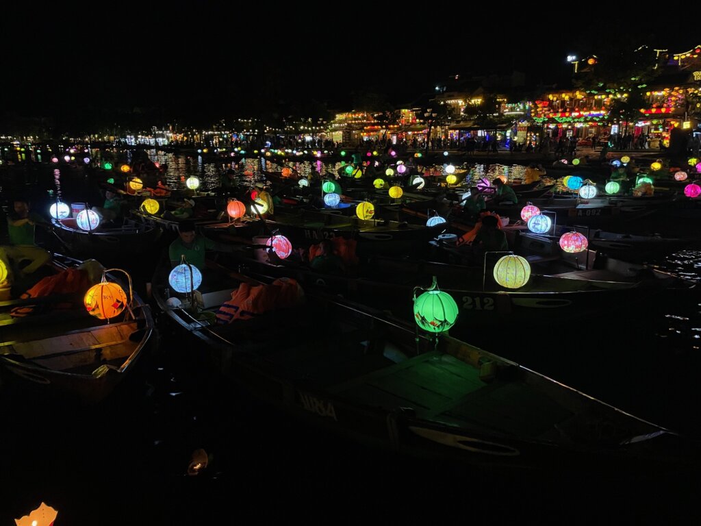 I grabbed dinner then continued to walk along the river, admiring and snapping photos of the numerous lantern-lit canoes along the way. I was tickled to also see “flower lanterns” in the water. I’ve always wanted to see a river filled with flower lanterns. While this river wasn’t filled with them, I spotted maybe a dozen or so. Cute!