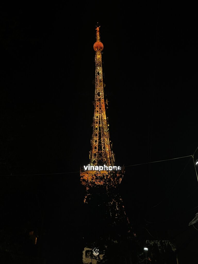 I finished a lap around the market and then decided to go check out an interesting structure off in the distance. The tower reminded me of the Eiffel Tower and I wanted to get closer to try and get a photo. Unfortunately, the view next to the tower was obstructed by a massive fence. The tower was a, I guess, telephone power. Tons of power lines joined together and then ran up to the tower. Also, Vinaphone is a cell phone provider, so… yeah. I thought it looked really cool, though! Sort of retro-futurism vibes.