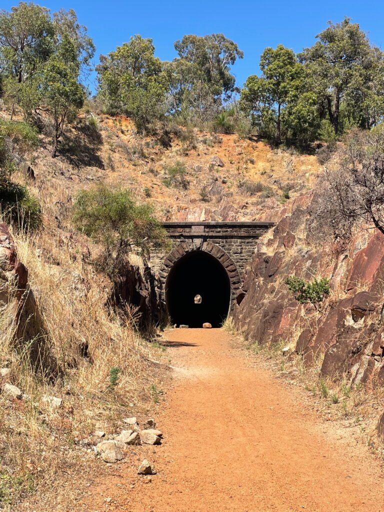 Next, we went to check out the Swan View Tunnel. It was really cool to see this old tunnel, constructed over 100 years ago. It goes straight through, so you can see the other side of the tunnel peeping through. My intention was never to go through to the other side – I was afraid there would be giant centipedes and huntsman spiders in there… but Jason made the decision for the both of us.