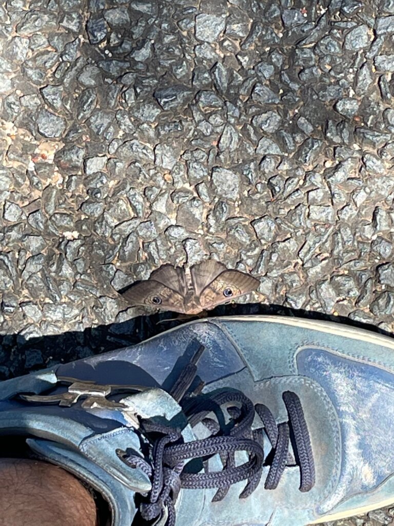 We also saw a really cool moth – I have never seen one that looked like this before in real life! It flew over and landed right next to my shoe. I stopped walking and it just sat there for a moment. When I lifted my foot again, it flew off immediately. Very cool!