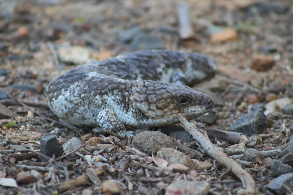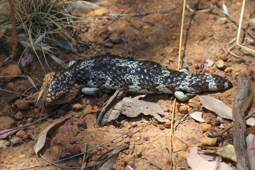 While I probably never would have been inclined to go through the tunnel, I’m glad we did. Within minutes of exiting through the other side, we were able to see a bobtail lizard up close. I had seen one a couple weeks prior the day I went to Omeo Wreck with Kory, but it ran away before I could get near it and see the details of its body. The defining characteristic of the bobtails is that their tails look similar to the shape of their heads – perhaps an evolutionary advantage?